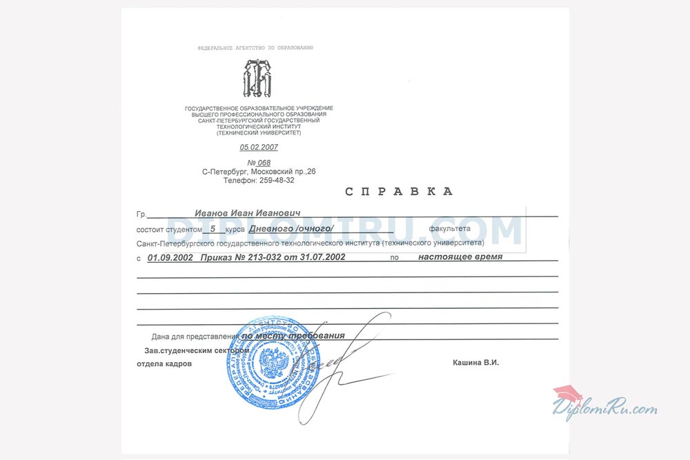 Справка об обучении в ВУЗе, техникуме, школе