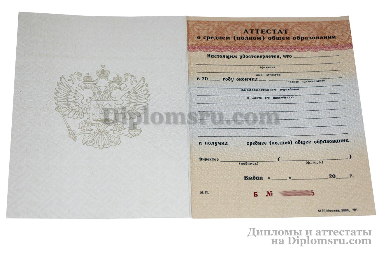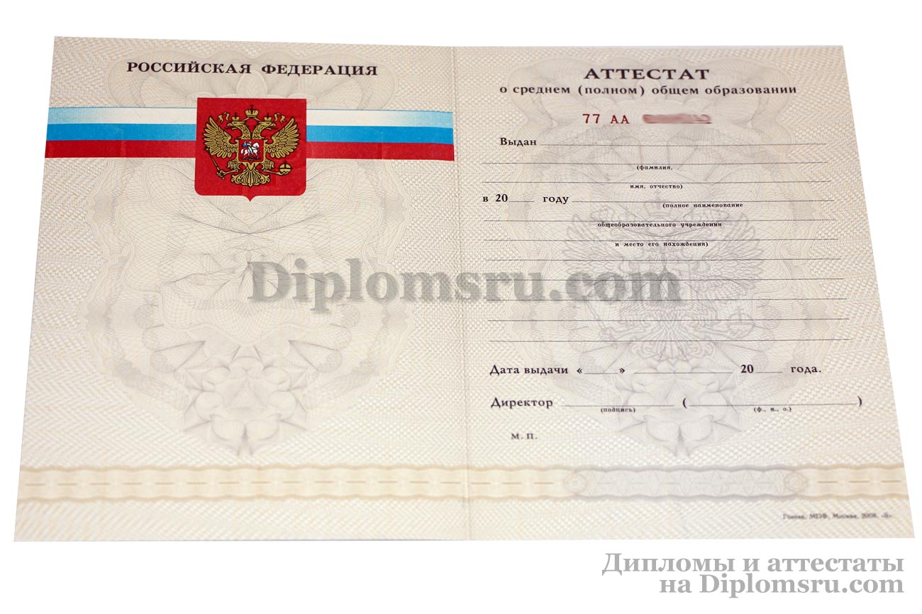 Аттестат школы за 11 класс, «Гознак» 2007-2009 годов |