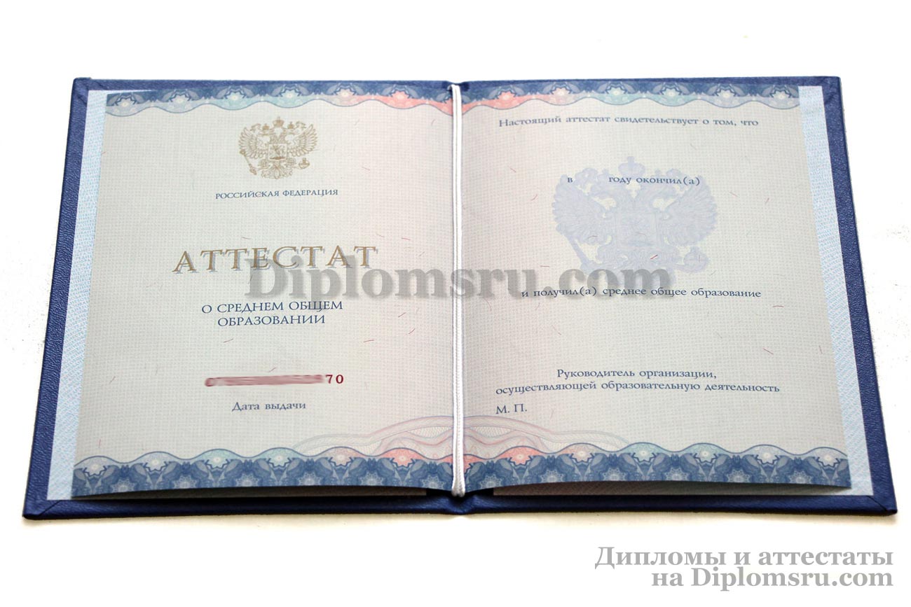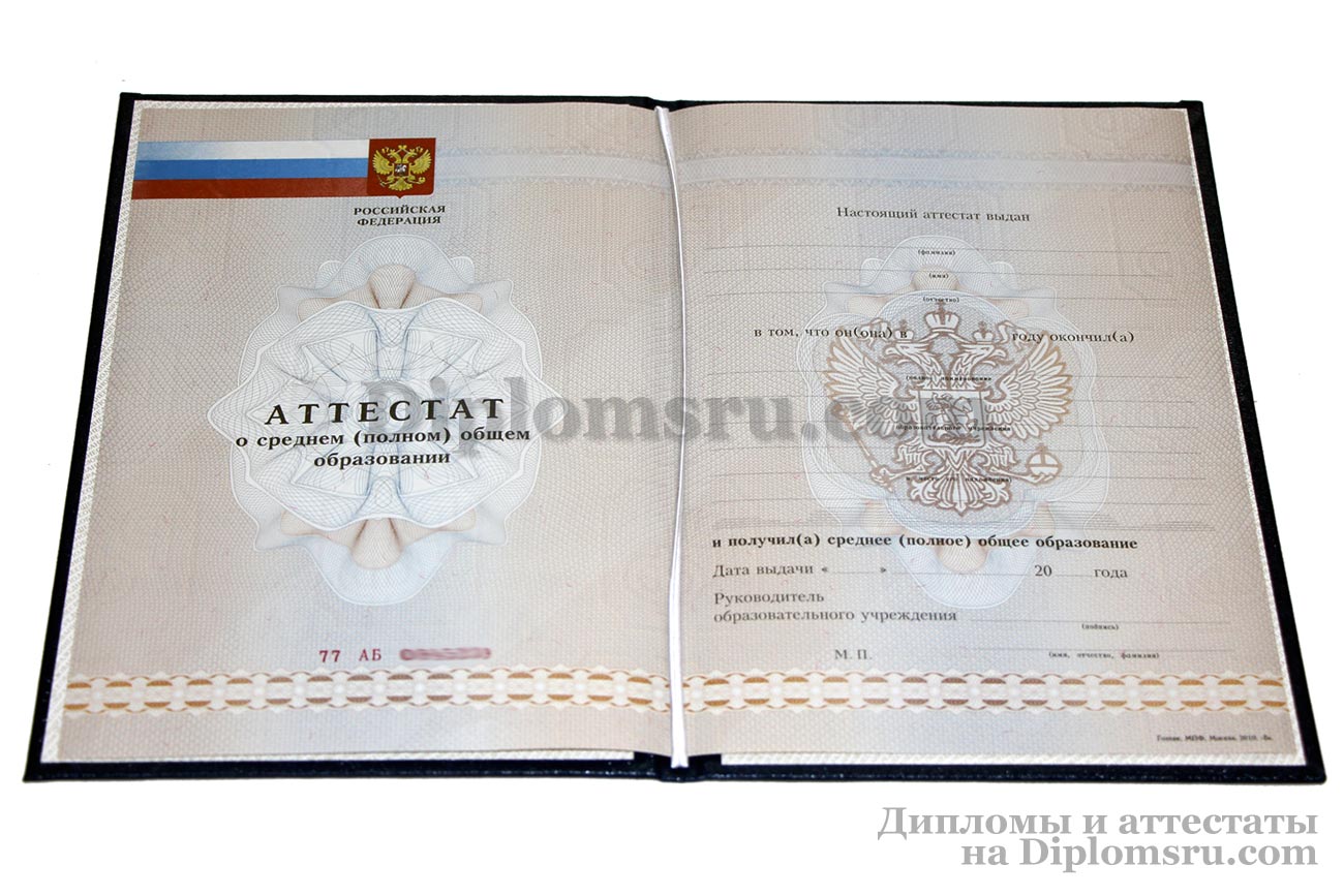 Диплом о среднем образовании 2014-2024 без QR кода с приложением, в твердой обложке. «Гознак». |