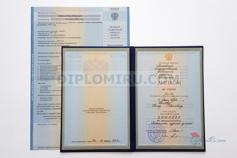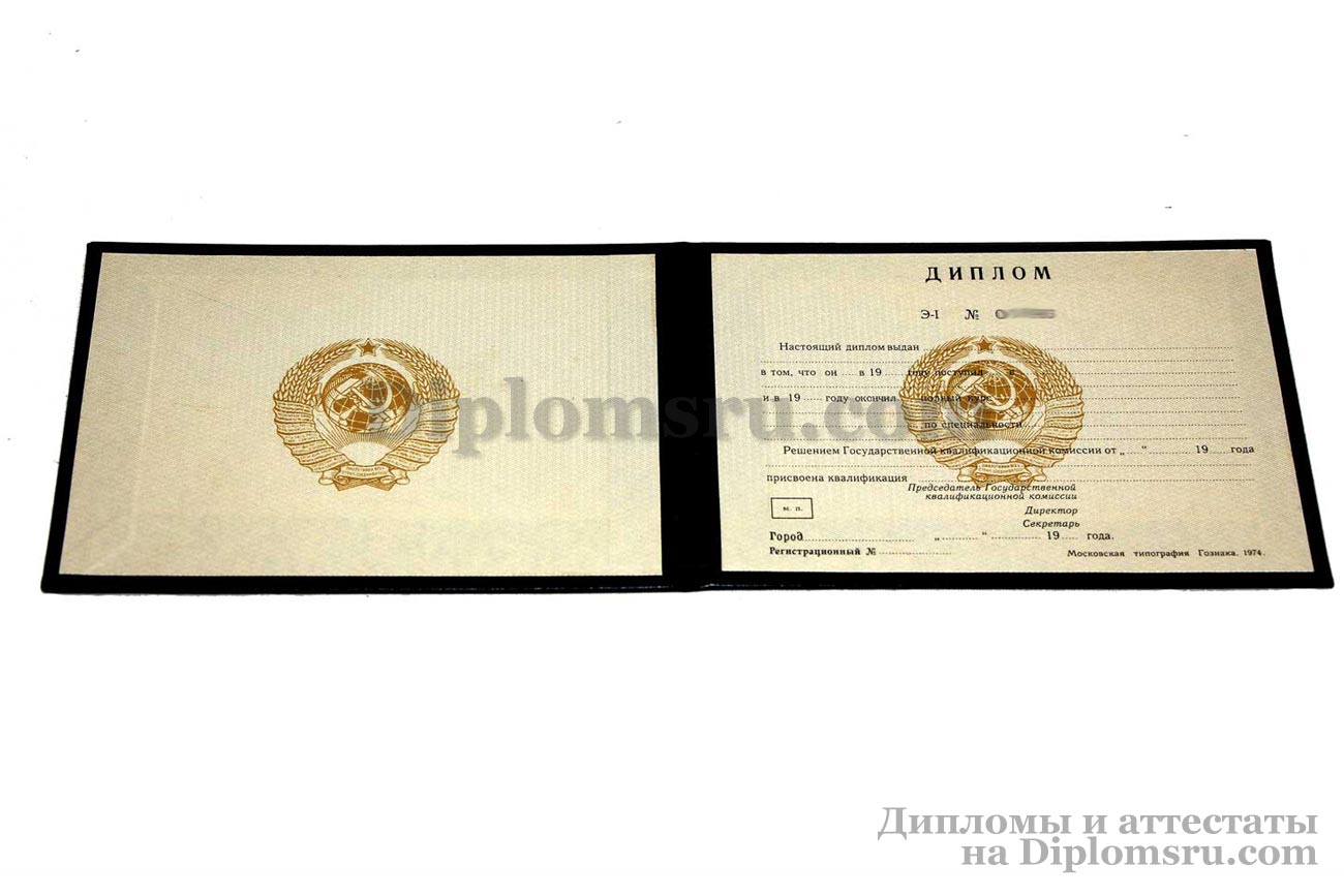 Диплом о высшем образовании СССР (РСФСР) до 1996 года, с приложением, в твердой обложке. «Гознак». В наличии: специалист. |